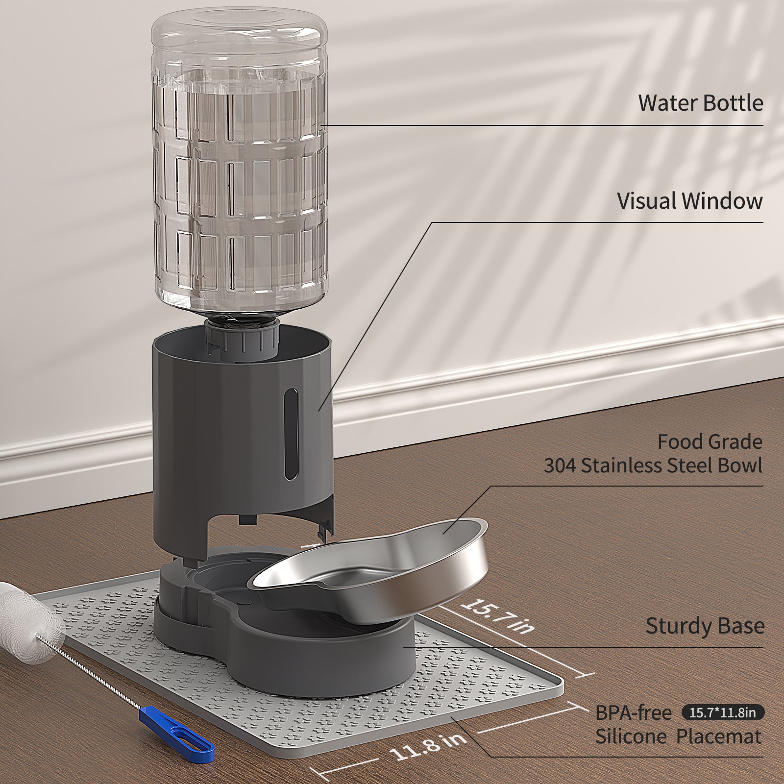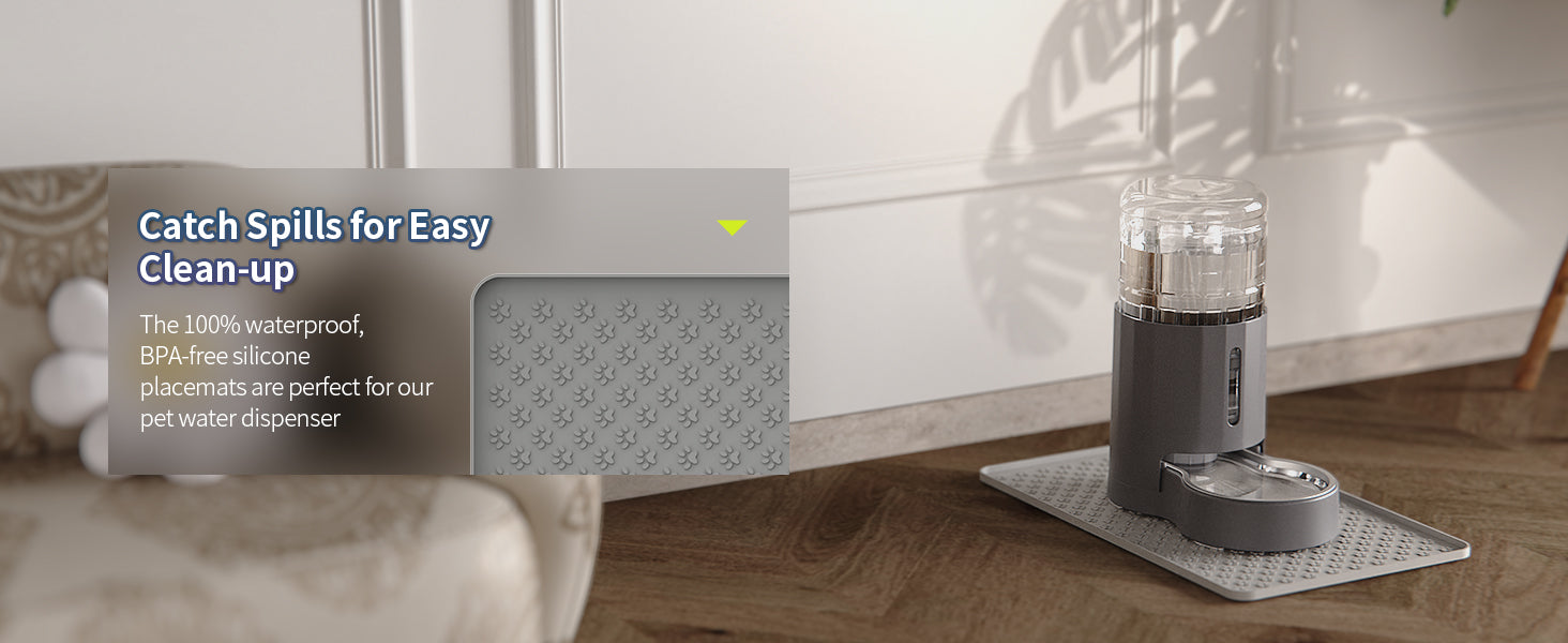 A BPA-free silicone placemat has been thoughtfully included to keep the cat waterer stable and the floor dry. The water bowl of the water feeder is made of higher quality food grade 304 stainless steel, durable and safe, which can ensure the safety of your pet's drinking water.