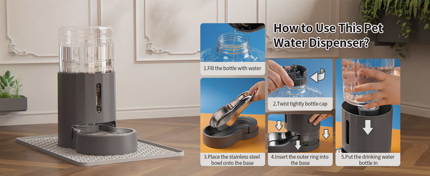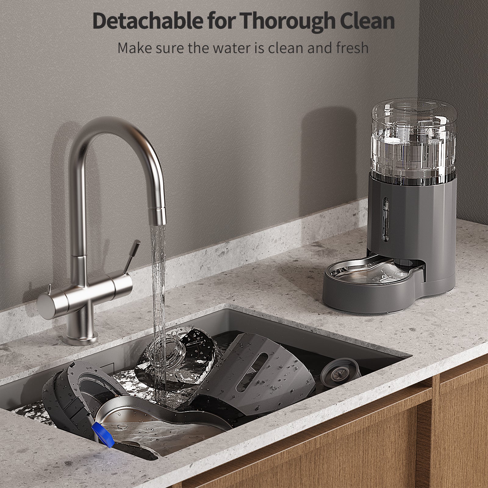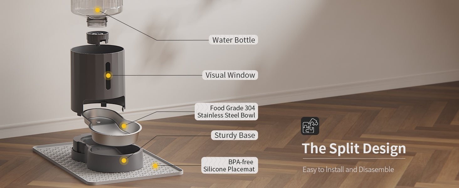 The cat water dispenser is easy to install and disassemble, this split design allows all parts of the dog water dispenser to be easily removed and each corner can be cleaned, so that your pet can use it with more peace of mind.
