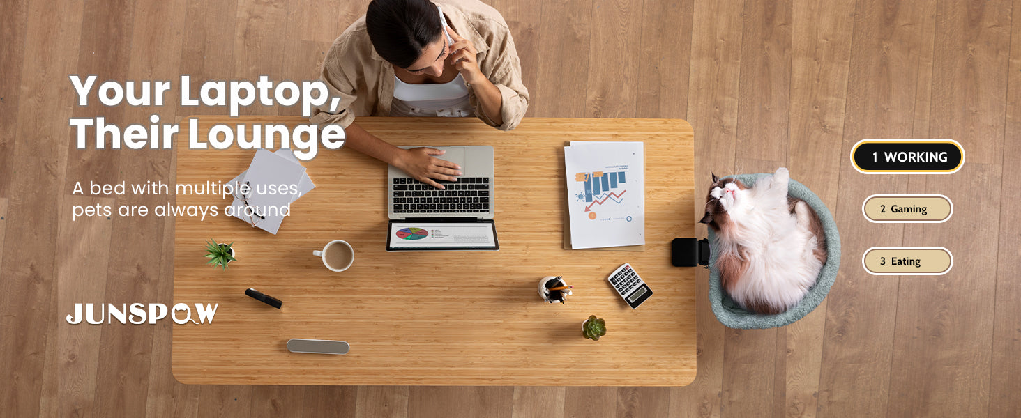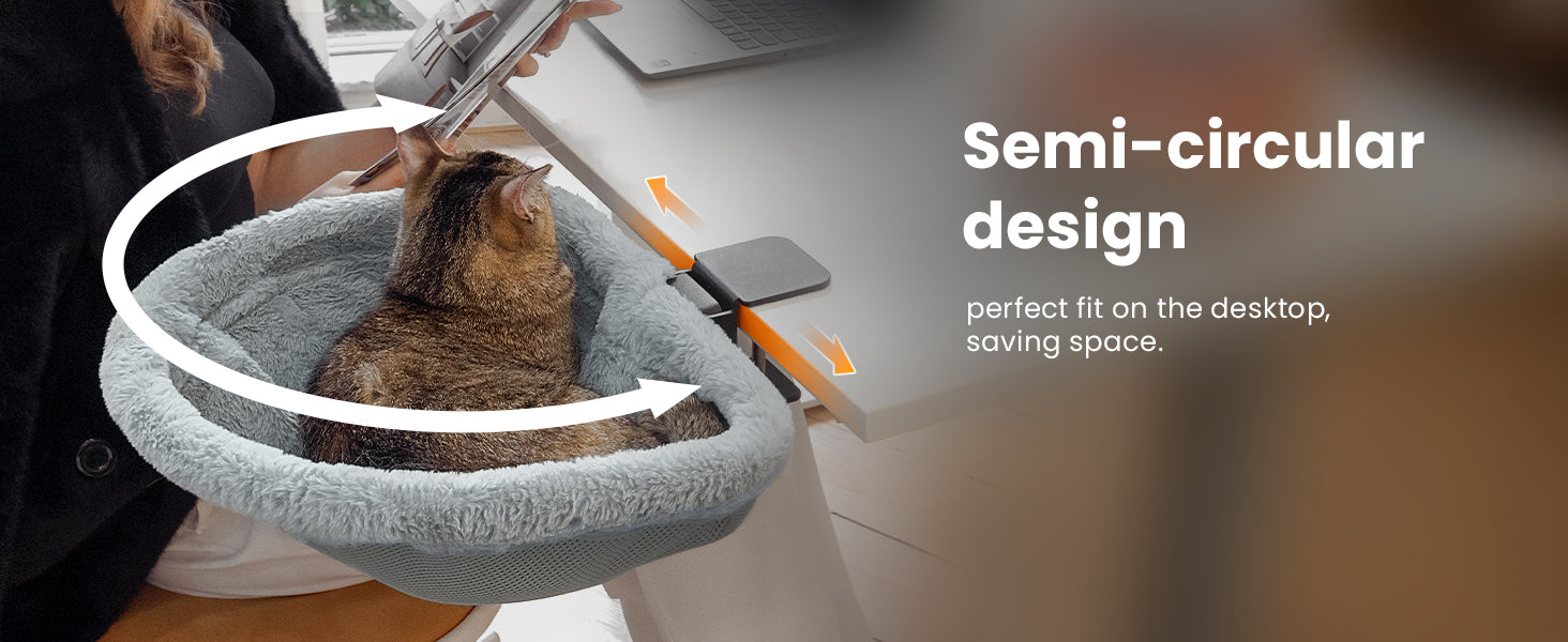 The cat desk bed redefines the way people and pets coexist, so you can still be with your cat at work without interfering with each other. Say goodbye to the anxiety of cats stepping on the keyboard and improve work efficiency.