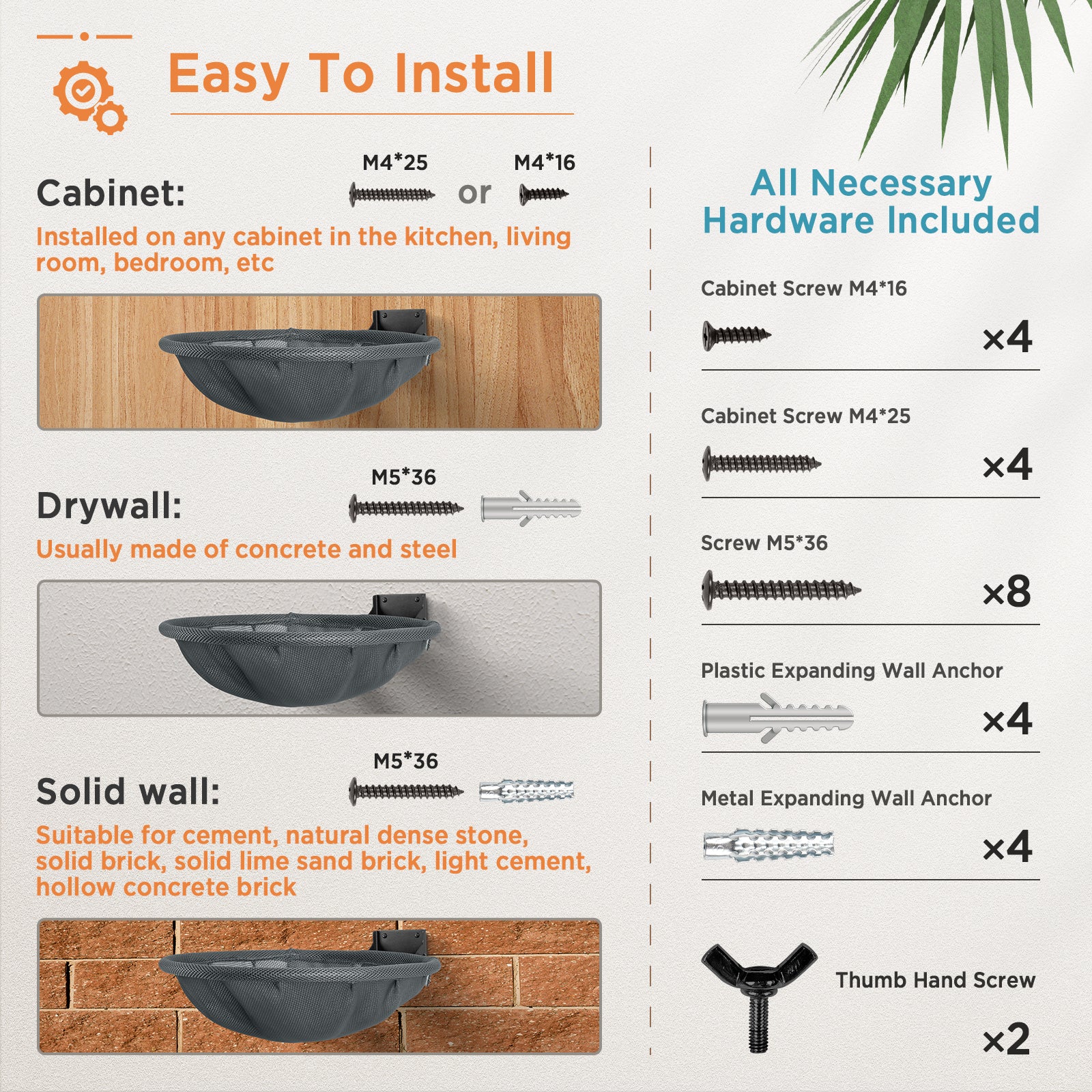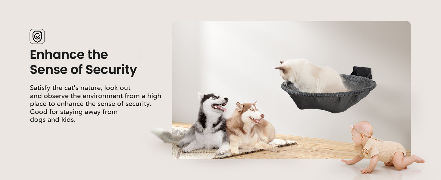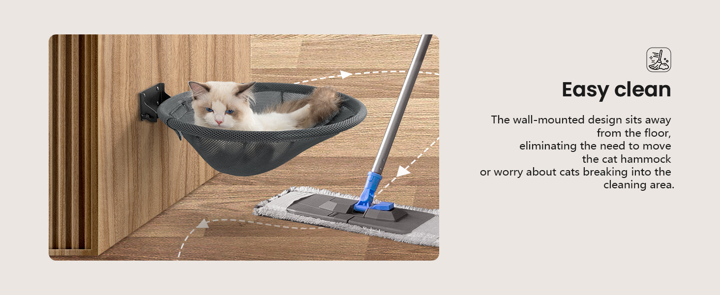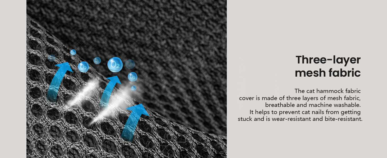 The cover that comes with this wall hammock is high-quality breathable sandwich mesh fabric, It can be moisture-proof and stuffy, fresh, and breathable, which can help lose heat in hot summer. The round hammock design allows cats to lie on it more comfortably and feel secure.