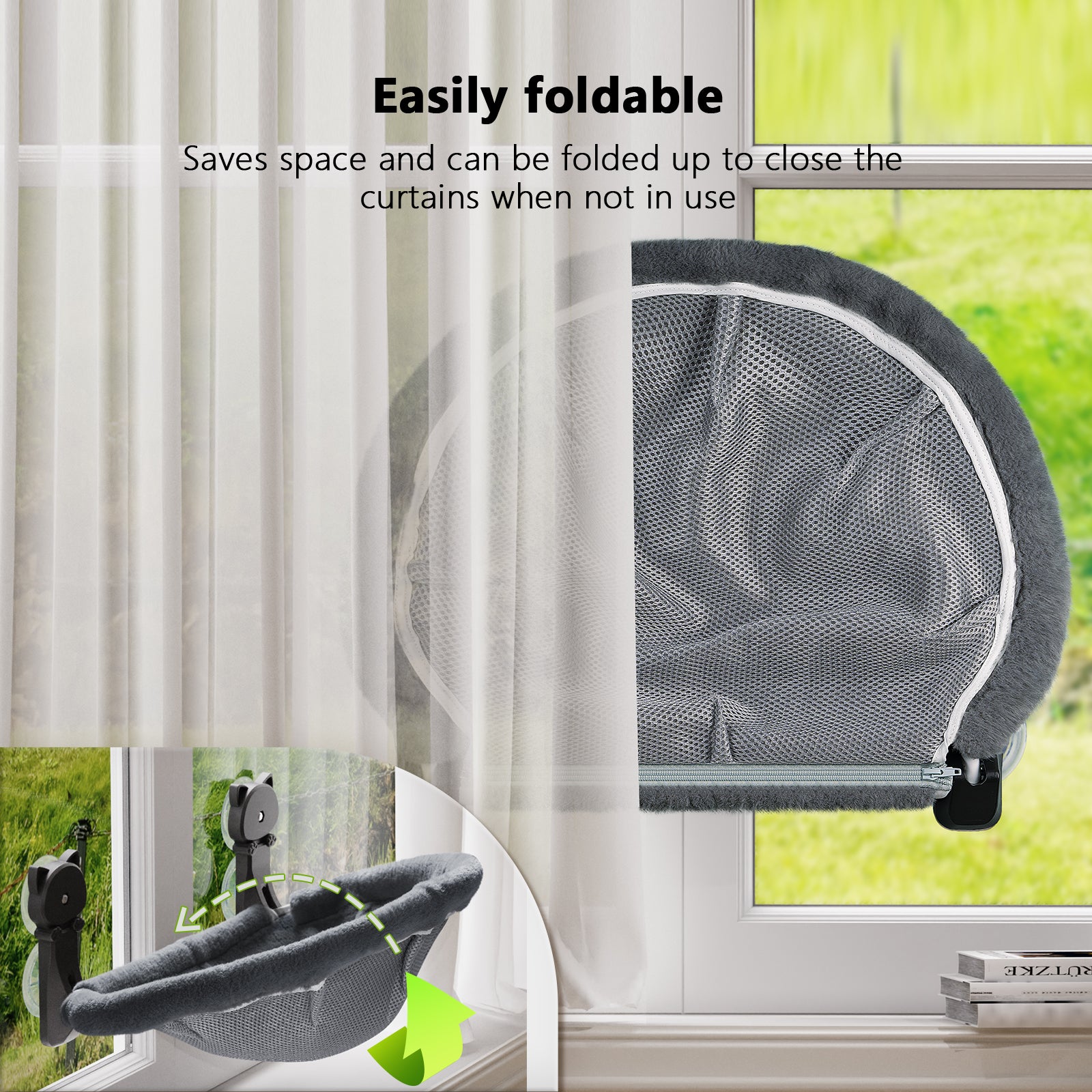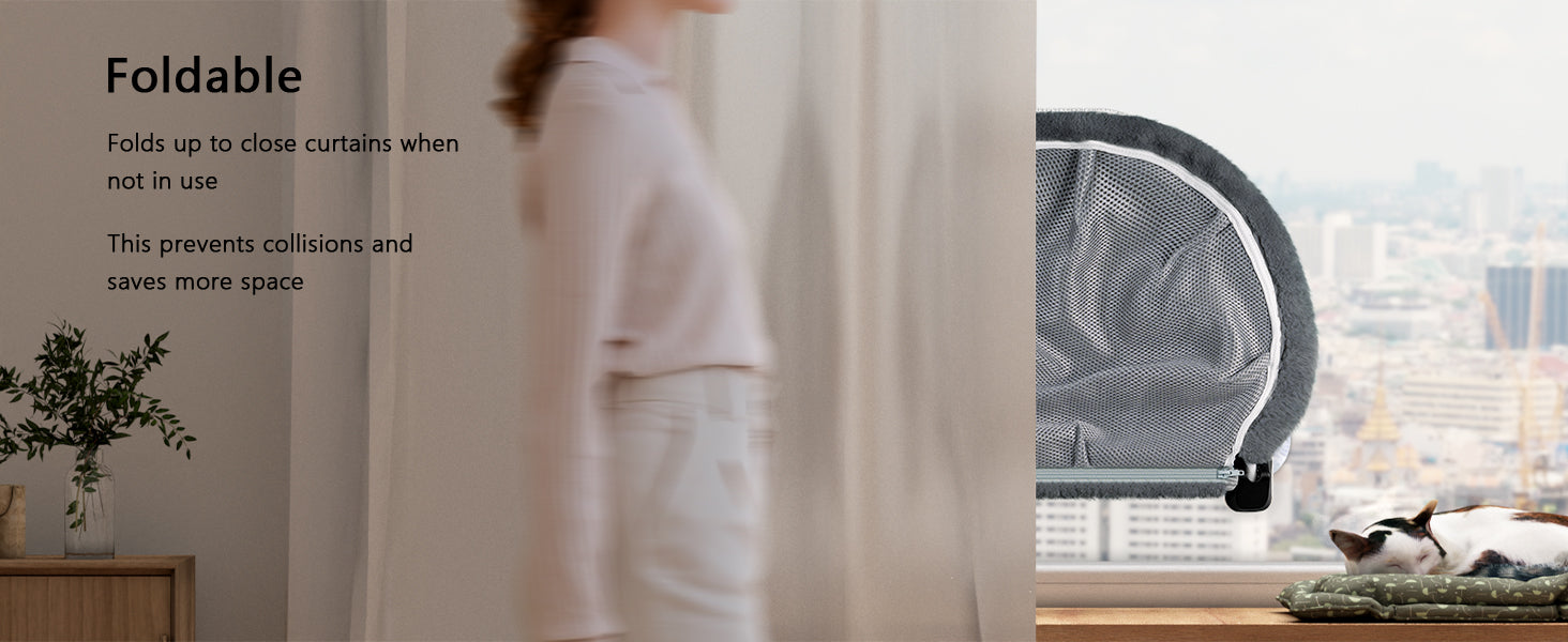 This cat hammock can be installed on the window or wall without taking up floor space. It is foldable upwards so that you can fold it up whenever it is not in use, easy and convenient collection. It can greatly improve the utilization of interior space.