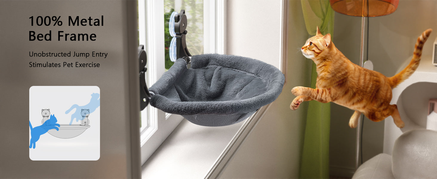 The Main support frame for the cat window perch is made of sturdy metal and, with mounting hardware, won’t bend, break, or deform. Four powerful suction cups and no need for manual installation. Maximum load capacity up to 40bl.
