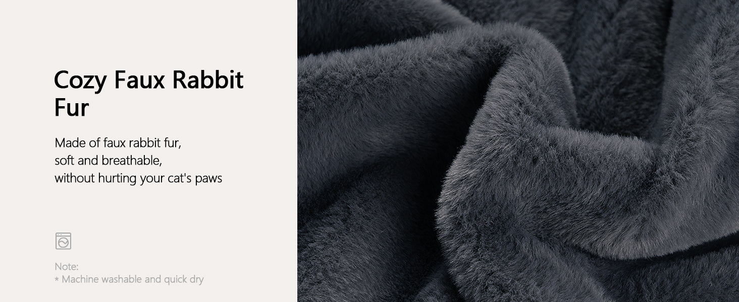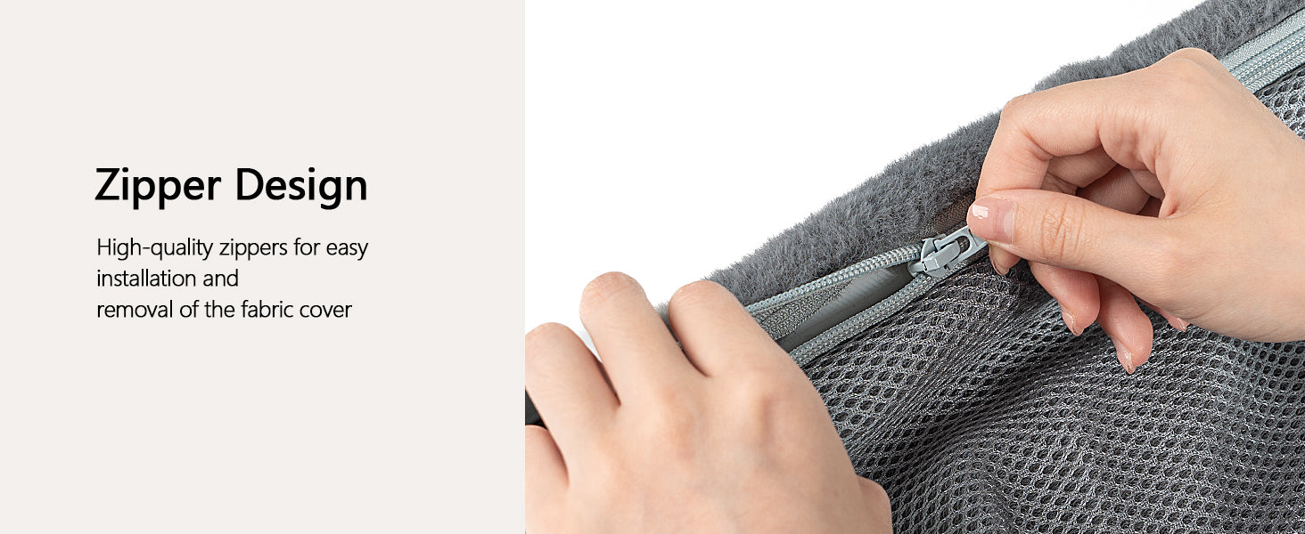 The cover that comes with this cat hammock is designed with a zipper that is easy to install and remove. There are a total of two materials to choose from, the mesh material is breathable and keeps your cat cool and comfortable in the hot summer, and in the fall and winter you can use the faux rabbit fur material, which is soft and warm and provides a cozy resting environment for your cat in the cold season.