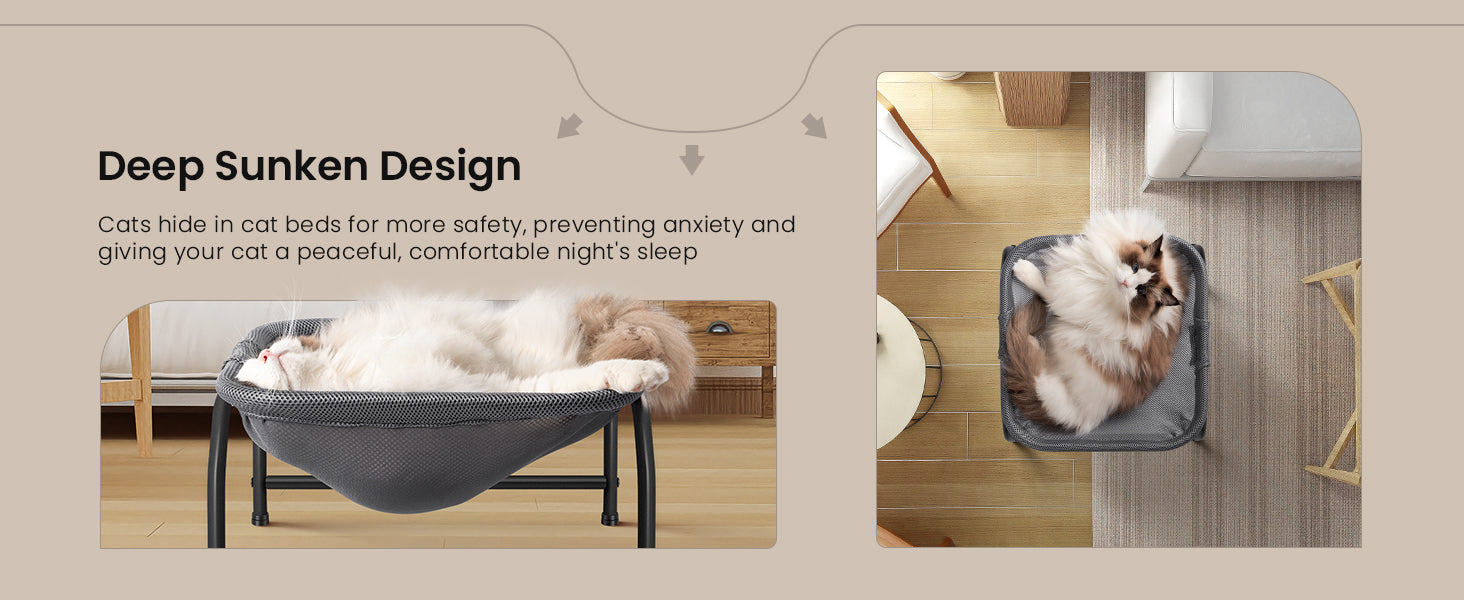 This large cat bed upgrade foot plug and foot plug protector design. You can adjust the height of the cat bed by the retractable foot plug at any time, the cat bed is stability even when placed on uneven ground. Non-slip foot plug protector can protects the floor from friction.