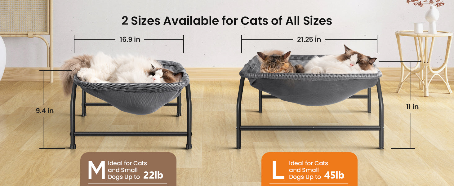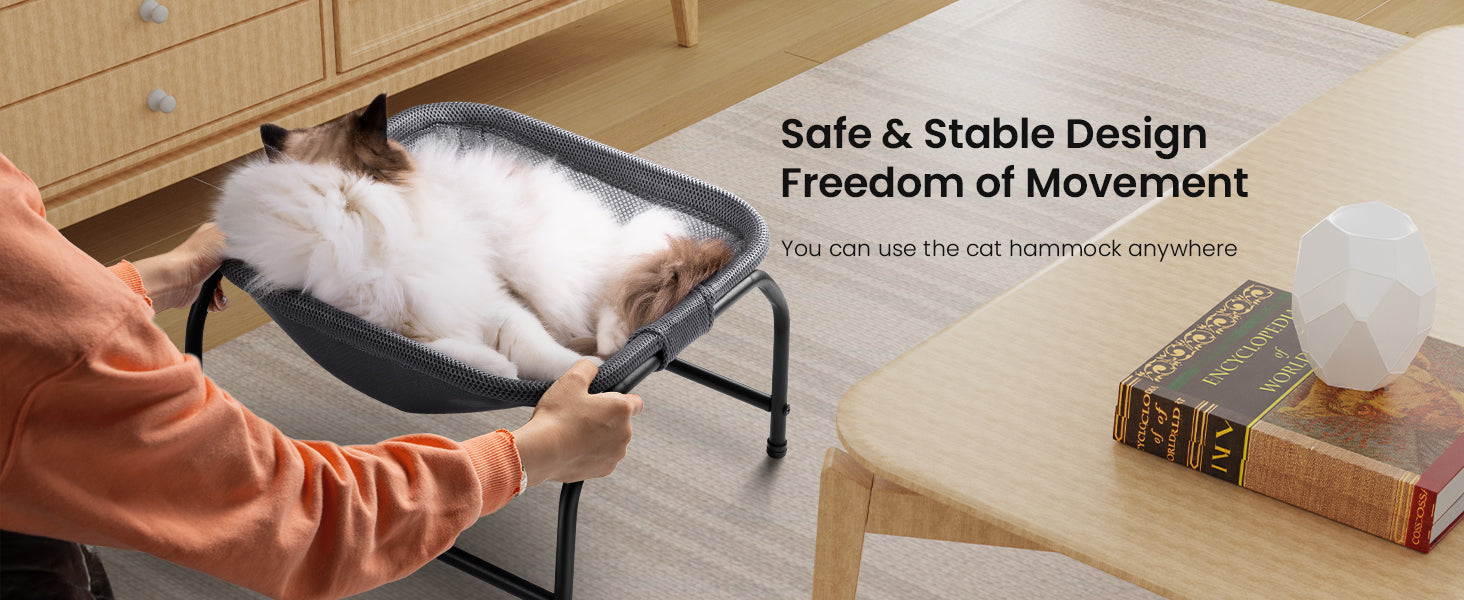 Large Cat Hammock Bed - Free-Standing Square Pet Sleeping Bed, Detachable, Easy Assembly for Indoor/Outdoor Use