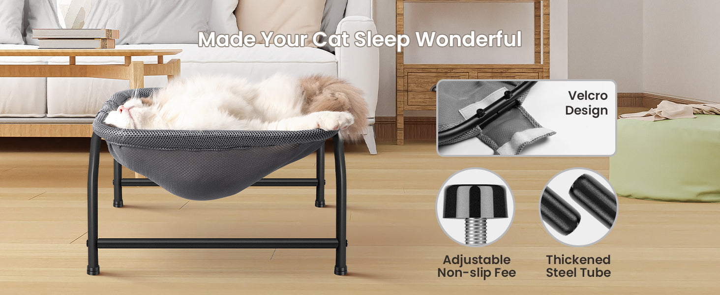 This Hammock bed with upper and lower structure, more convenient to disassemble and making it easier to remove and wash the fabric cover. And the cat beds comes with its own screwdriver and instructions, No additional tools required for assembly and it can be installed quickly in just 5 minutes.