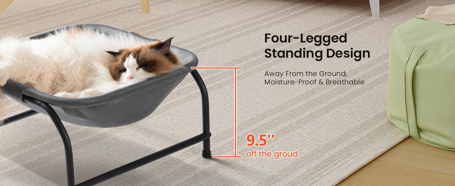 Newly added foot plug and foot plug protection sticker design. The cat bed can be placed on uneven ground by adjusting the height using the retractable foot plugs. Foot plug stickers prevent slippage and protect the floor.
