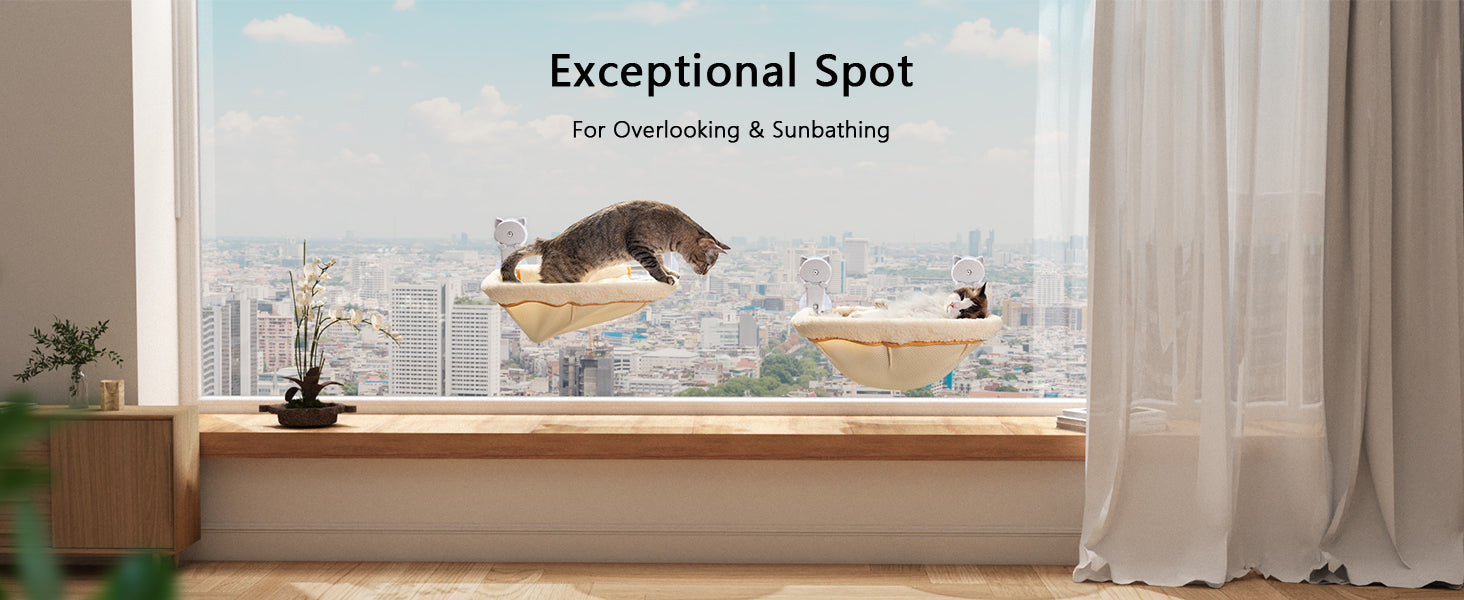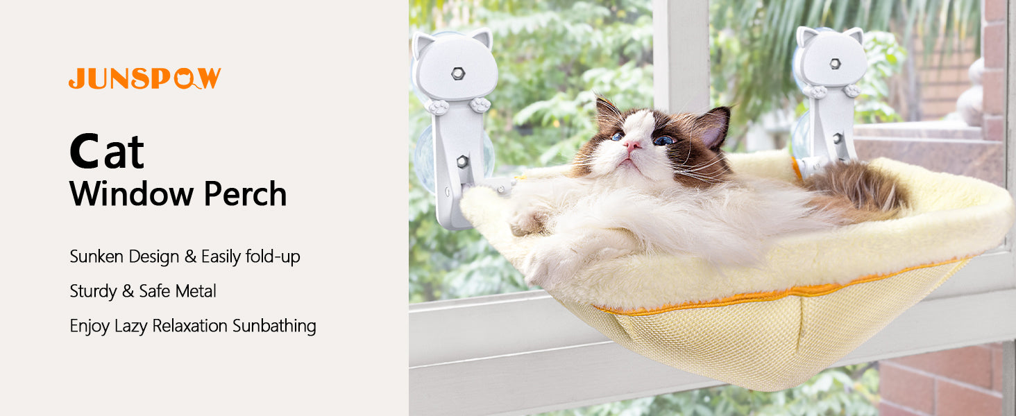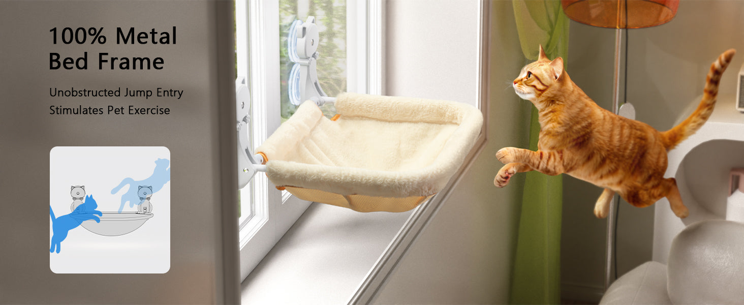 The Main support frame for the cat window perch is made of sturdy metal and, with mounting hardware, won’t bend, break, or deform. Four powerful suction cups and no need for manual installation. Maximum load capacity up to 40lb.
