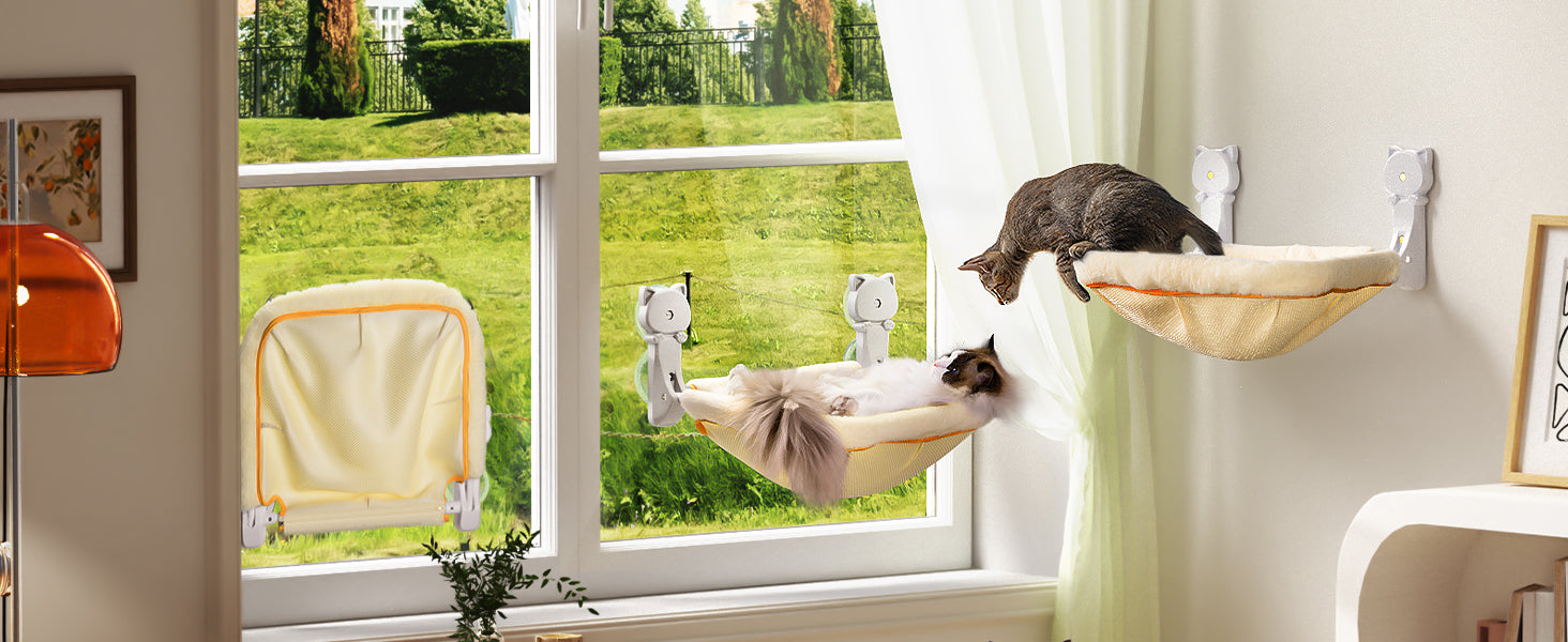 This cat hammock can be installed on the window or wall without taking up floor space. It is foldable upwards so that you can fold it up whenever it is not in use, easy and convenient collection. It can greatly improve the utilization of interior space.