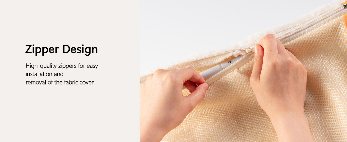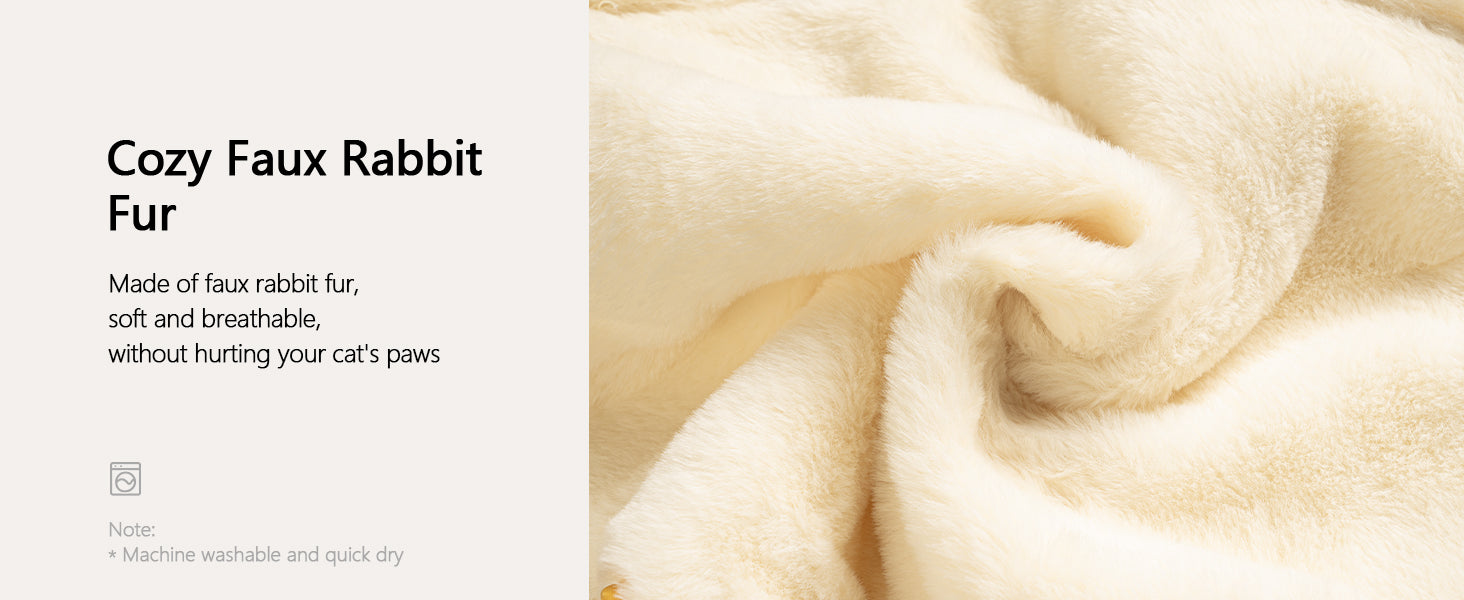 The cover that comes with this cat hammock is designed with a zipper that is easy to install and remove. There are a total of two materials to choose from, the mesh material is breathable and keeps your cat cool and comfortable in the hot summer, and in the fall and winter you can use the faux rabbit fur material, which is soft and warm and provides a cozy resting environment for your cat in the cold season.